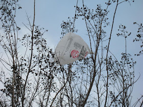 ....not that you'd choose to have one. I certainly didn't. But, I do....two, no less. Many thanks to the thoughtless folks who put loose bags in their trash. In case you're curious, they're way up there...at least second story high. We get the pleasure...not...of waiting for the wind to whip them around long enough to tear them and send them elsewhere. One has been there since just after Christmas....the other, after last Tuesday's trash pickup.